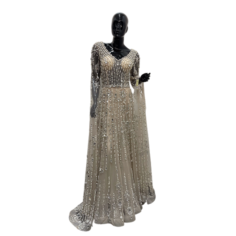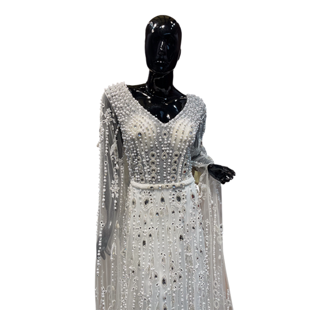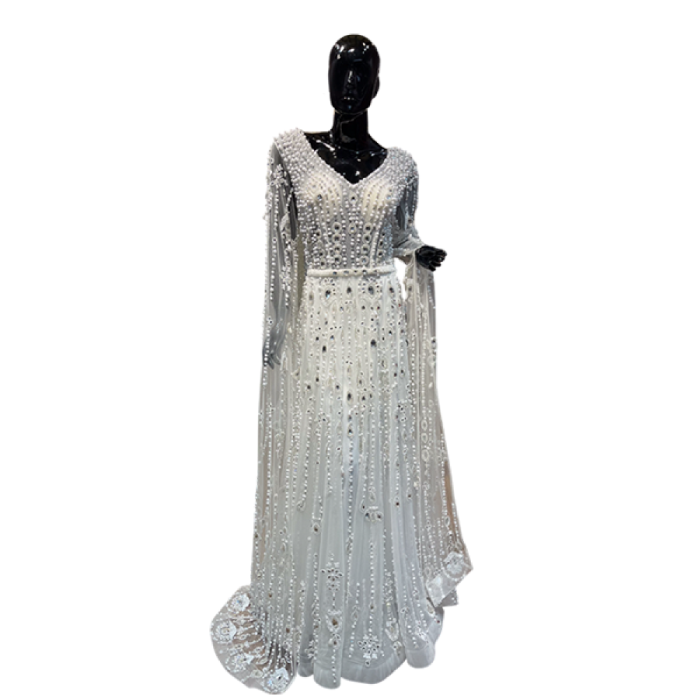 فساتين مناسبات , تألقي بحضور استثنائي مع فستان حفلات راقٍ من Lina Fashions، حيث يلتقي التصميم الفخم بالتفاصيل الدقيقة ليمنحك إطلالة لا تُضاهى، يأتي الفستان بلون الأوف وايت المفعم بالرقي والصفاء، مع تطريزات لؤلؤية تغطي القماش بالكامل لتجعلكِ أشبه بأميرة تسير بخطوات واثقة، كما يزينه كاب شفاف طويل يضيف لمسة ملكية هادئة ليكون خياركِ الأمثل للمناسبات الكبرى التي تستحقين فيها الظهور بأبهى صورة.